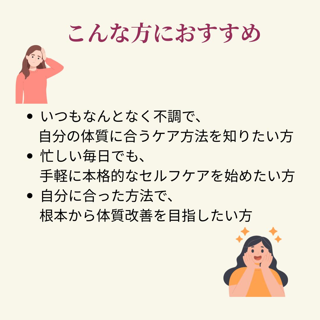 オンラインでの体質診断に加えて、60分のカウンセリングを行います。
